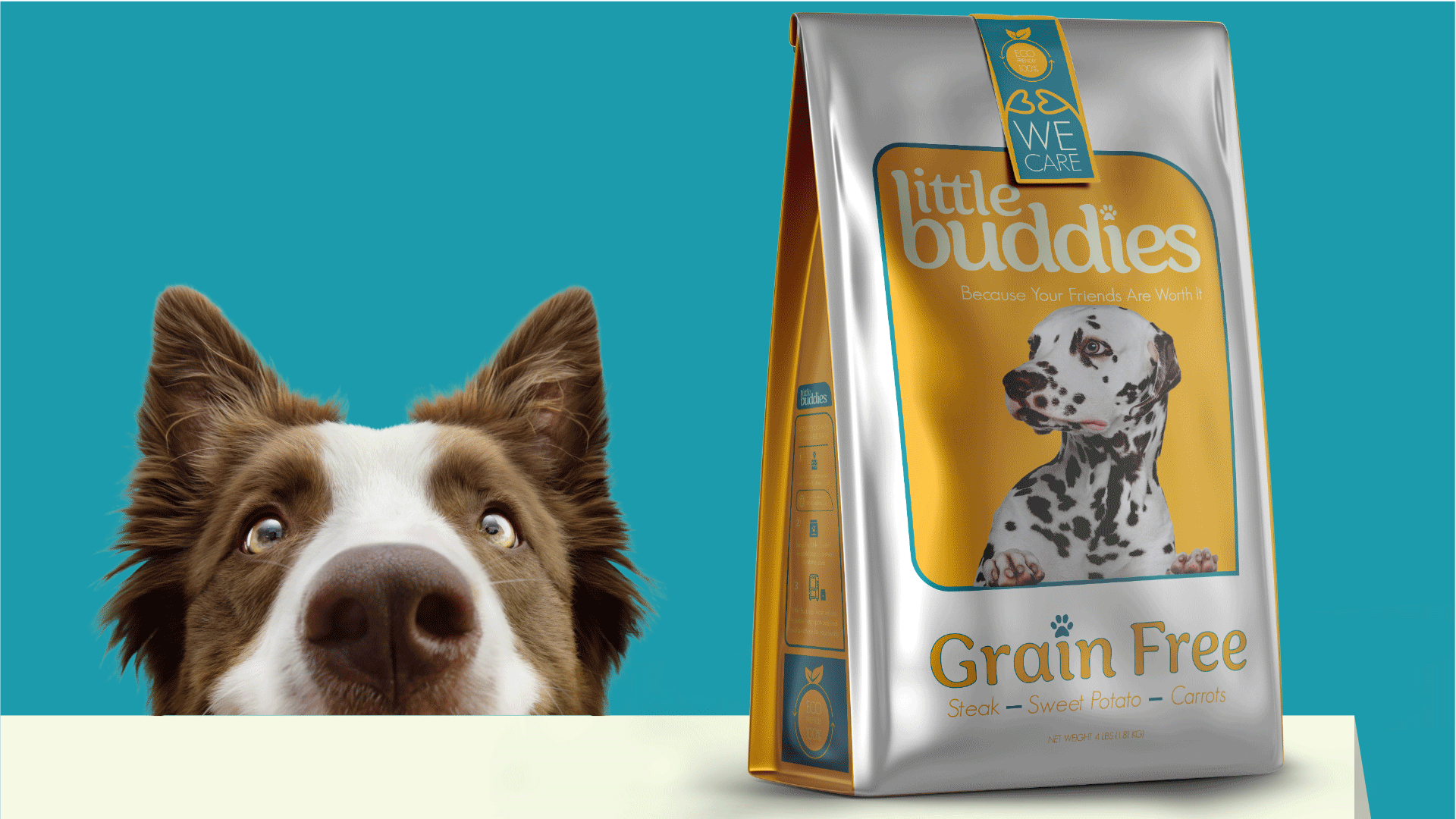 As a dog owner of a spirited little Yorkie named Sparky, I wanted to create a pet food brand that I would genuinely trust and use myself. Little Buddies was built on the belief that dogs aren’t just pets, they’re friends, and that caring for them should feel thoughtful, joyful, and healthy. I used vibrant, eye-catching colors and friendly packaging to reflect that warmth while helping the product stand out on the shelf. The eco-friendly refillable bag system became the final touch, shaping a brand that supports both pets and the planet with the same love I give to Sparky.